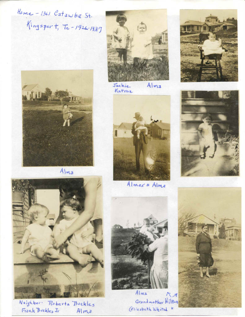 Collaged of photographs depicting family at home in Kingsport, Tennessee with notes.