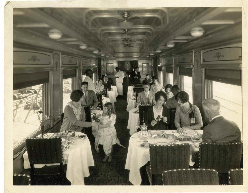 Photograph of the inside of a train passenger cart.