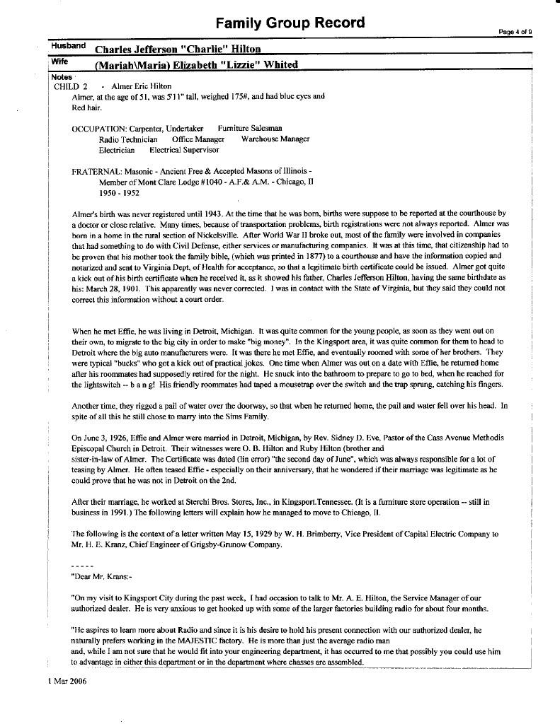 Family Group Record - Almer Eric Hilton
